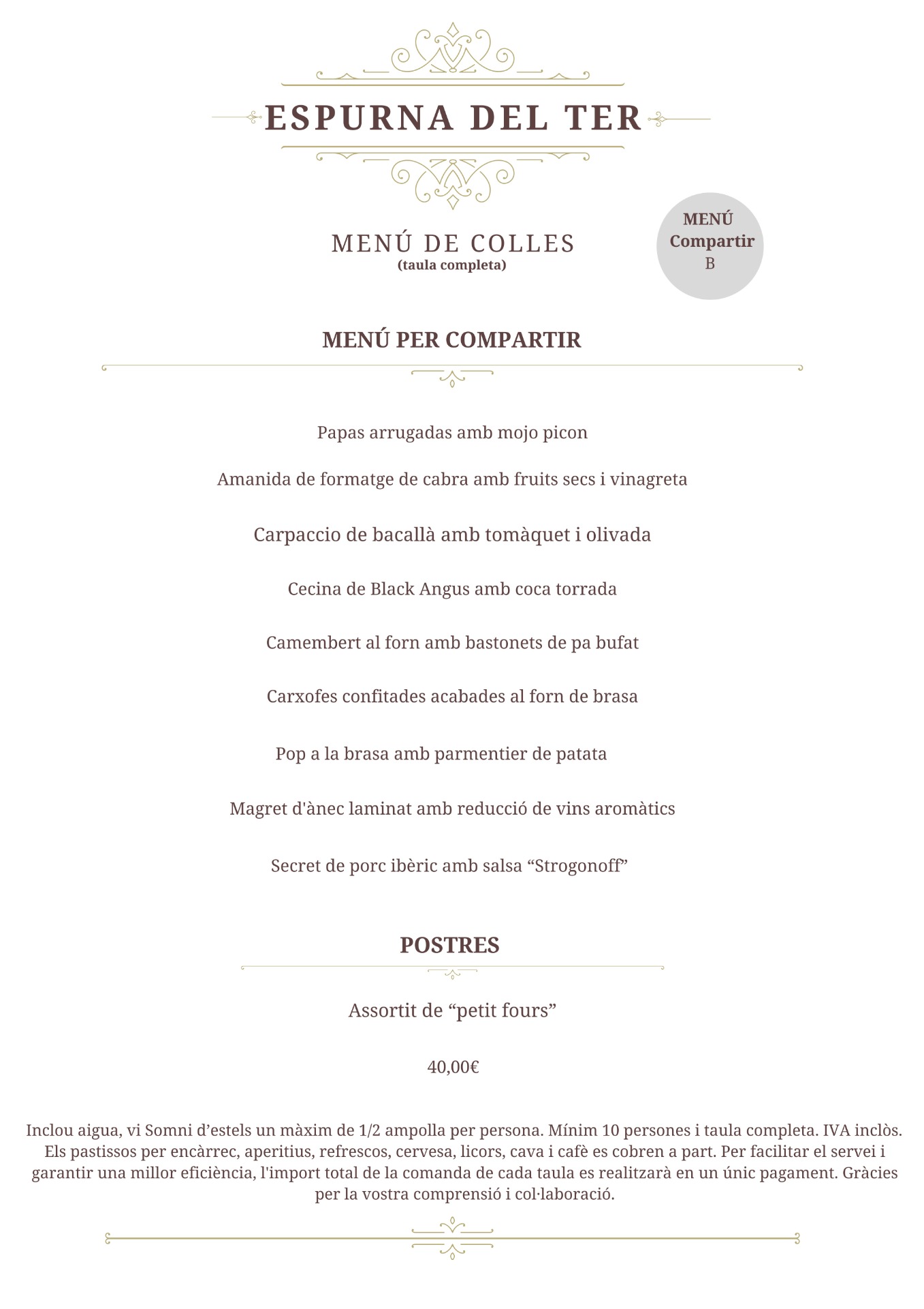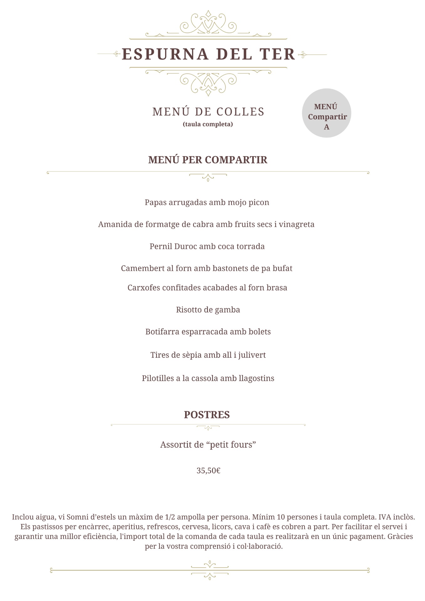 Aquest menú s'ha de demanar per a tota la taula i no es pot combinar amb altres menús.